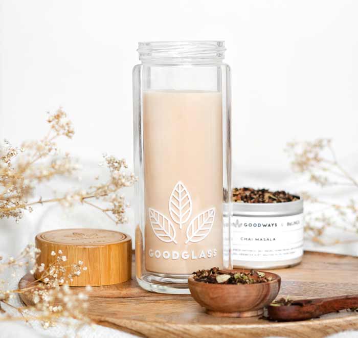 3. Strain it through the strainer into our glass eco bottle GoodGlass Thermo or mug and let it cool to a temperature that will be pleasantly drinkable.