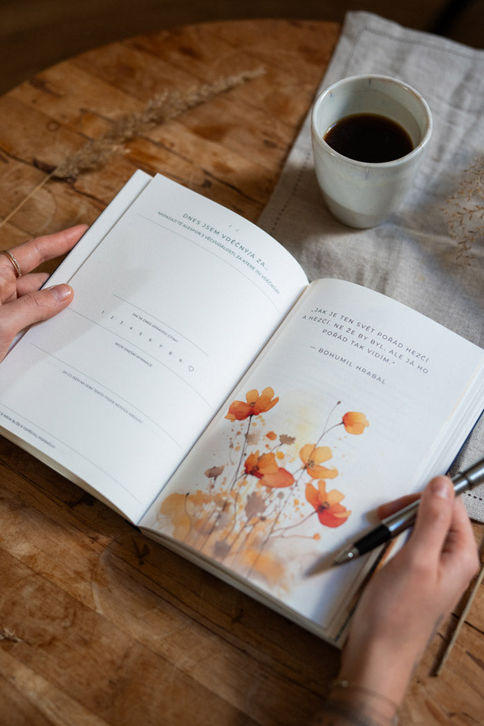 V dnešní uspěchané době člověk snadno zapomene na drobné radosti života. Proto bychom tě chtěli pozvat k tomu, aby sis každý den našla/el pár minut, zamyslel/a se a zapsal/a si, za co cítíš vděčnost. Věříme, že i takový krůček v tvém životě vyvolá velké změny a brzy pocítíš rozdíl.