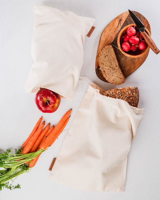 Naše látkové pytlíky na bezobalové nakupování jsou pro tebe šité v České republice z kvalitní biobavlny. Jsou základní nepostradatelnou výbavou každé domácnosti. Jsou lehké a prodyšné, ale zároveň pevné, pojmou dostatečné množství pečiva, ovoce, zeleniny či jiných potravin na váhu a jsou jednoduše uzavíratelné pomocí zdrhovací šňůrky. Nakupování s nimi je tak snadné!