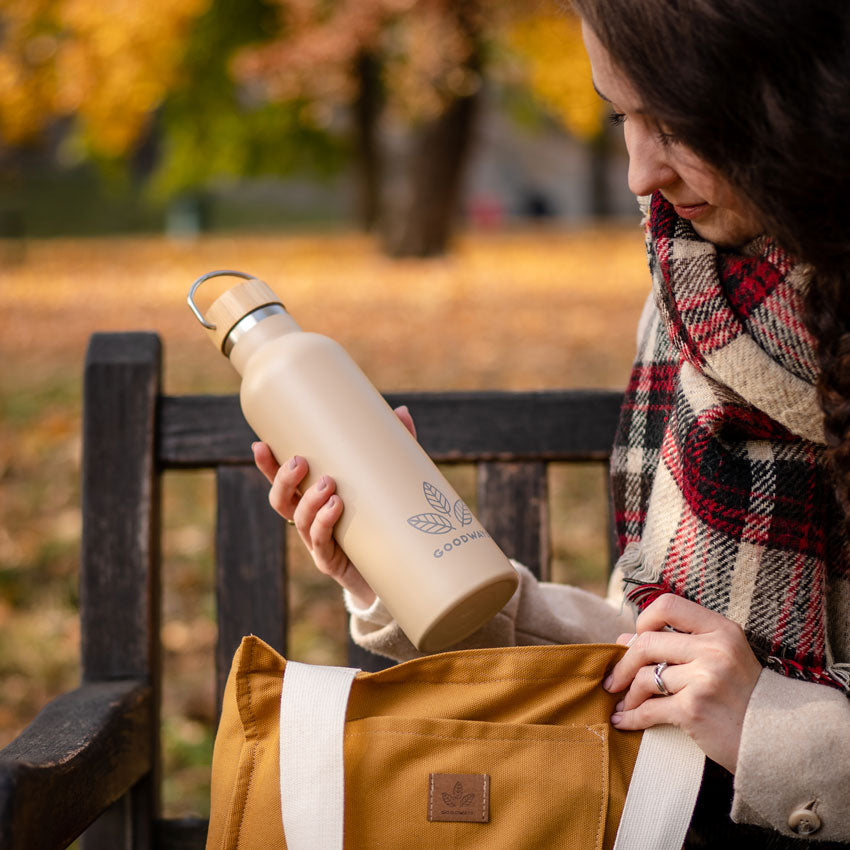 It comes in two different sizes to meet the varying needs and demands of each of us. GoodFlask 750 ml is a stainless steel bottle of standard size for everyday use, while the one with 1000 ml capacity is great for longer trips or journeys where there isn't a frequent opportunity to refill. You can choose from three different modern yet subtle colors - Mint, Sand and Pink, so everyone can find their perfect match. Which one will be yours?