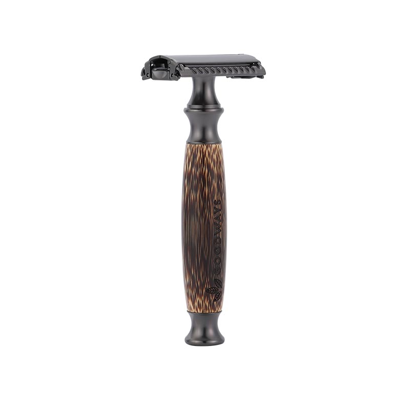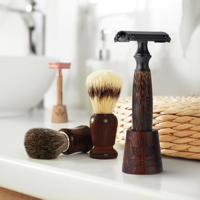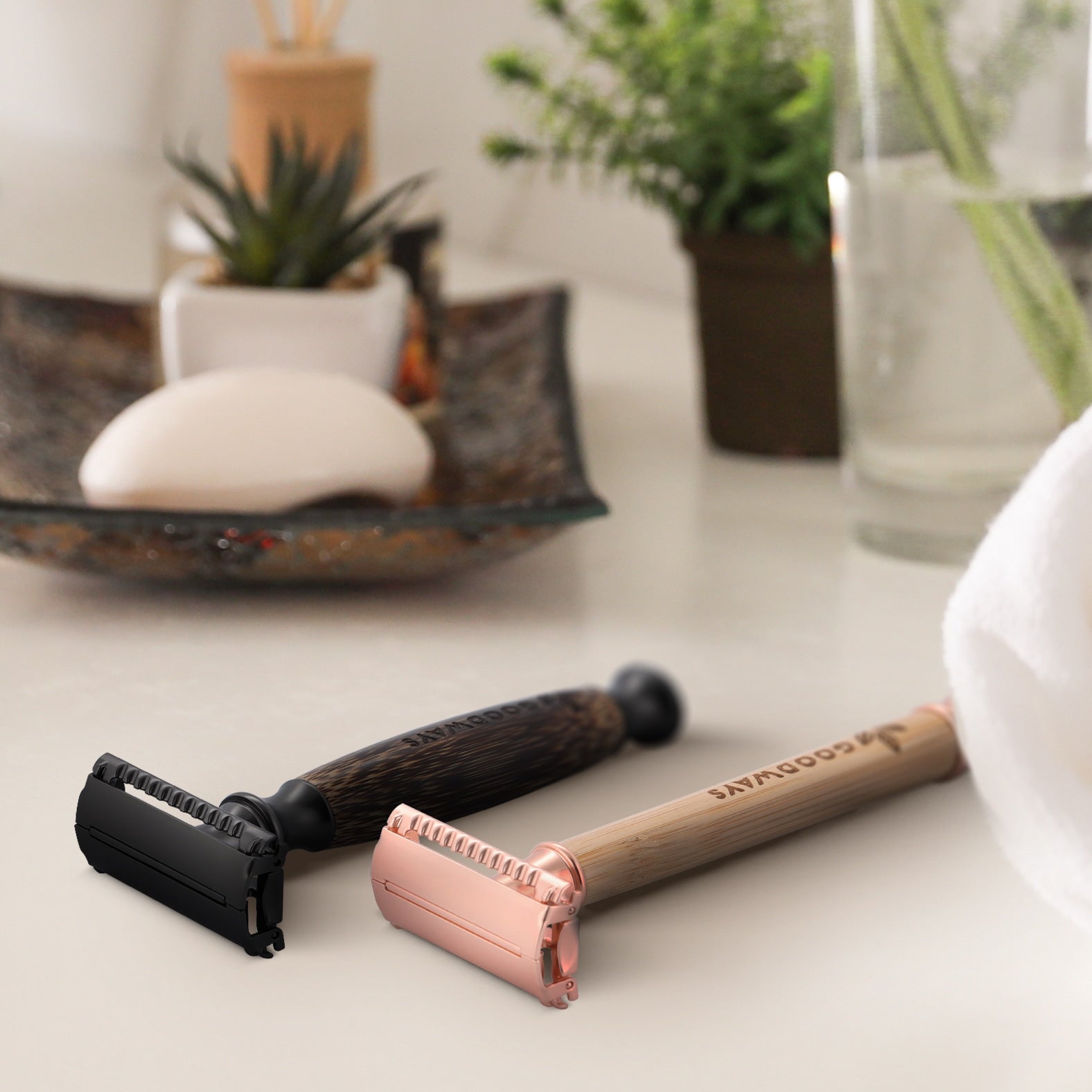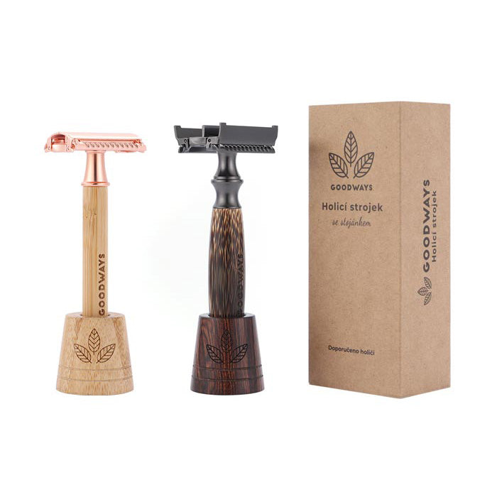 One razor for a lifetime? Why not! Let's return to classic shaving without plastic. GoodRazor is a reusable razor for blades with a stand made from natural bamboo, high-quality brass, and zamak (zinc alloy). It is a stylish accessory for any bathroom or cosmetic bag. In two versions, the elegant light Rose Gold is suitable for ladies, while the robust Dark is for men. Shaving with GoodRazor is gentle on the skin, safe, and suitable for all parts of the body.